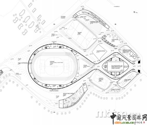 這個(gè)運(yùn)動(dòng)場(chǎng)的設(shè)計(jì)是“城市運(yùn)動(dòng)”建筑的一部分,目的都是用來(lái)減少城市擁擠——運(yùn)動(dòng)場(chǎng)的中心地帶將會(huì)建造一條人行通道,其它路面也會(huì)圍繞運(yùn)動(dòng)場(chǎng)的周圍建造。人行通道是游客可以近距離的接觸體育場(chǎng),遠(yuǎn)離周圍嘈雜的城市環(huán)境和交通。