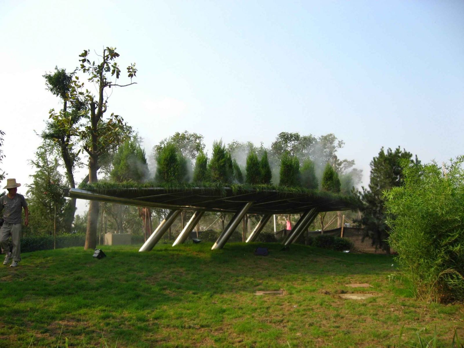 第二屆中國(河南、鄭州)綠化博覽會深圳展園以"綠葉"作為載體,以現代的經過藝術形態演繹"都市繁花、枯木沙丘、濕地甘泉、荒山育林"的景觀序列,展示都市繁華背后,過度開發導致環境惡化,氣候變暖,土地沙漠化日趨嚴重……由此喚醒人們在低碳時代植綠愛綠的意識,尋找綠色的平衡點,保護濕地、培育森林,讓綠色無處不在,生態環境更加理想。同時,利用現代景觀構筑物來宣傳深圳園林綠化取得的成就。