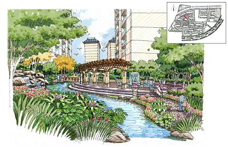 精致的歐式廊架,開闊的草坪,茂密的背景林帶,典雅的雕塑構成了整個軸線景觀,使其更生態,并富有趣味性。道路設計中巧妙繞開采光井,并將其裝飾為景觀小品,結合花砵和水在細節處體現更多的新古典風情。以組團式的配置手法,通過植物的高低、大小、錯落來為何相對獨立的景觀空間,為周邊的住戶提供舒適戶外休閑的交流場所,同時也成為小區的景觀焦點。