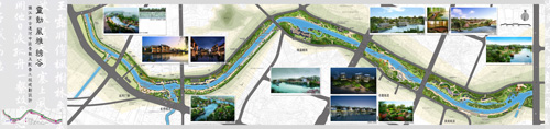 本項目以古運河悠遠的歷史文化為背景,從鎮江深邃多元的地域文化中鍛煉元素,將其從多方面多角度提煉、概括及升華,將自然元素及歷史人文緊密結合,營造運河文化主線。規劃從古運河悠久的歷史與深邃的傳統文化中提取設計靈感,以鎮江地域特色文化為背景,多角度發掘富有內涵的元素串聯成有機的整體,在對文化元素提煉,升華的過程匯總,運用綠化、建筑、小品、鋪裝、景墻作為載體,來突出主題。此項目位于鎮江市古運河中段風光帶,自京硯山路至經十二路,總投資約3億元。