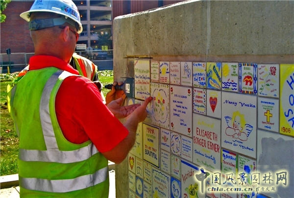 原有公園中的一大特色是小瀑布中央的一面粘滿五顏六色的手繪瓷磚的水泥墻,這里的每一塊瓷磚都講述著一個故事,為紀念曾經(jīng)或現(xiàn)在的偉大女性,她們是母親、祖母、姐姐、妹妹;是朋友;是教師、醫(yī)者、導(dǎo)師……而由于風化作用及其本身的易碎性質(zhì),想要在現(xiàn)有的項目中繼續(xù)保留這些多彩的瓷磚已然難以施行。