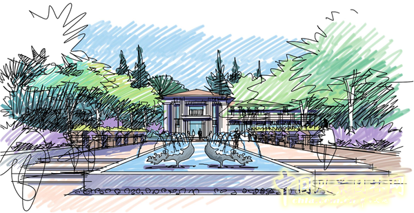 將“花”、“羽”、“境”、“秘”概念元素剖析落地,提取出花、羽、孔雀、曲線等多種生態(tài)元素,通過(guò)設(shè)計(jì)的變形和重組,將其抽象化、符號(hào)化,成為各個(gè)景點(diǎn)的特色,形成整個(gè)園區(qū)強(qiáng)烈的生態(tài)視覺(jué)符號(hào)。色彩艷麗的花木,不僅僅昭示著它的姿態(tài),更是空氣中彌漫的芬芳。