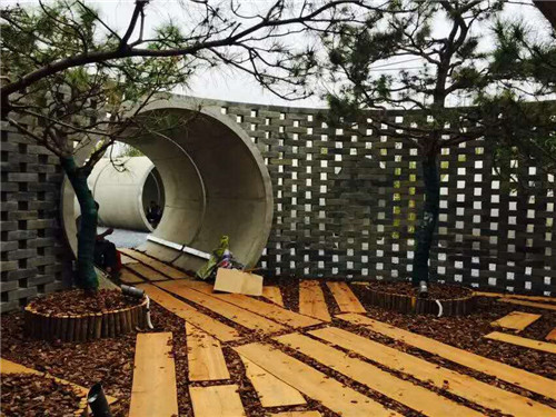 月之園鏤空墻和砼管的施工現(xiàn)場照片