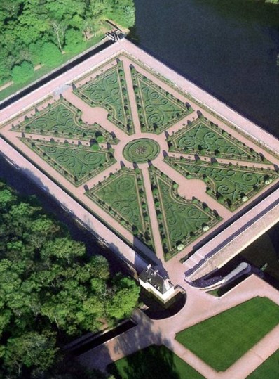 “文藝復(fù)興的意大利,古典主義的法國。”法國人沒有完全接受從意大利傳入的園林風(fēng)格,而是利用建筑、道路、花圃、水池以及形狀修剪得十分整齊的花草樹木,如同刺繡一般編織出美麗的圖案,形成極為有組織有秩序的古典主義風(fēng)格園林。在這里大自然仿佛被完全馴服了,風(fēng)景似乎變成了人工塑造的藝術(shù)品。