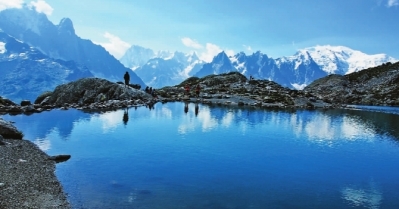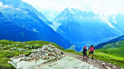 圖為在阿爾卑斯山脈徒步的游人。黃昊攝/光明圖片
