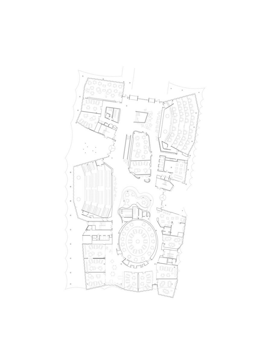 Learning spaces are grouped in clusters and supported by informal learning neighbourhoods. These clusters break down the scale of the building into smaller, more intimate settings for students to inhabit. Streets, courtyards, bridges, balconies and stairs are choreographed into ravines, clearings, strands, nests and amphitheatres to make a landscape of the interior.