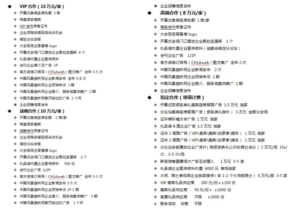 本屆高峰論壇是國際風景園林界的盛會,歡迎社會各界加入協辦贊助單位,共同打 造名牌產品戰略,主辦單位提供全程宣傳解決方案。